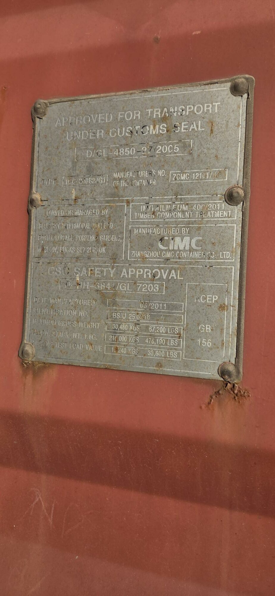 Container 20′ Dry Van – Qualité dernier voyage CAT B